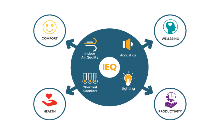 Healthy indoor environments depend on air quality, thermal comfort, acoustics, and lighting—all vital to wellbeing and environmental performance.