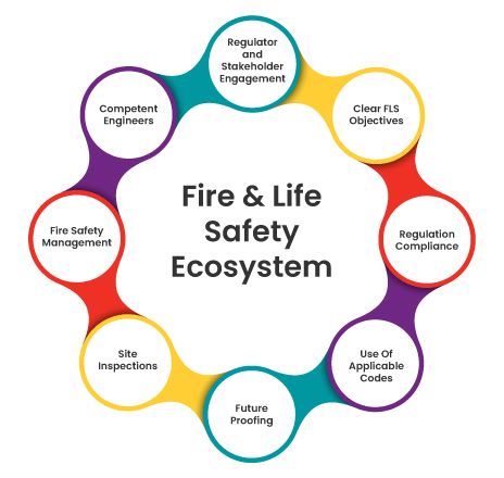 The team also coordinates fire safety with mechanical systems, electrical distribution, and sustainable technologies as well as building management system to prevent conflicts and enhance overall performance and optimal building operations.