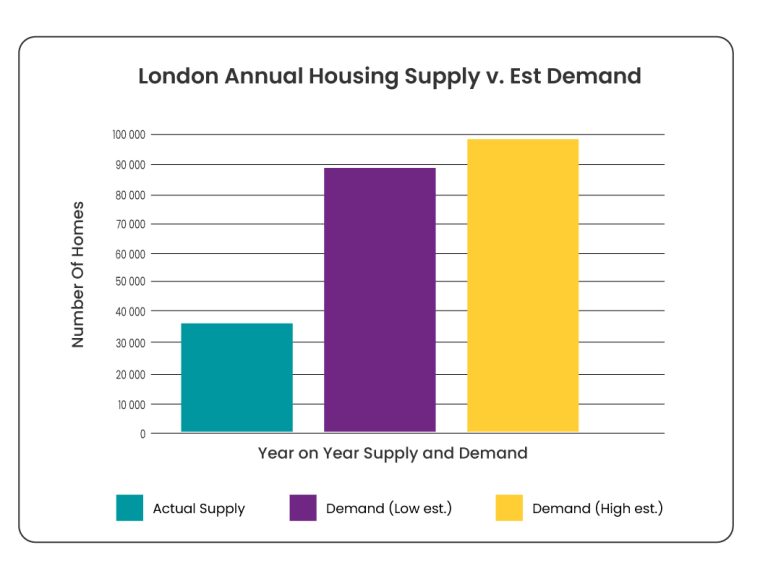 are required annually in London, with demand far outstripping current supply and deepening the housing crisis.