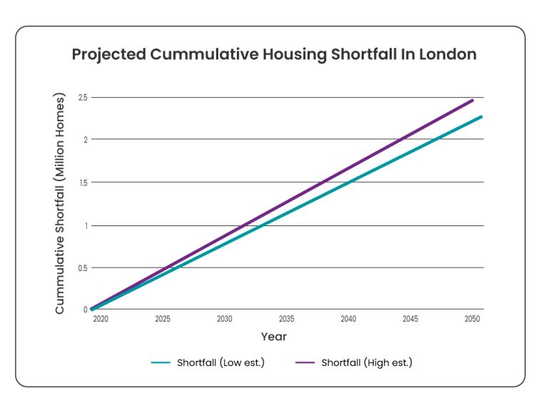 are lacking each year in London, driving a cumulative deficit projected to reach 1.74 million by 2050.